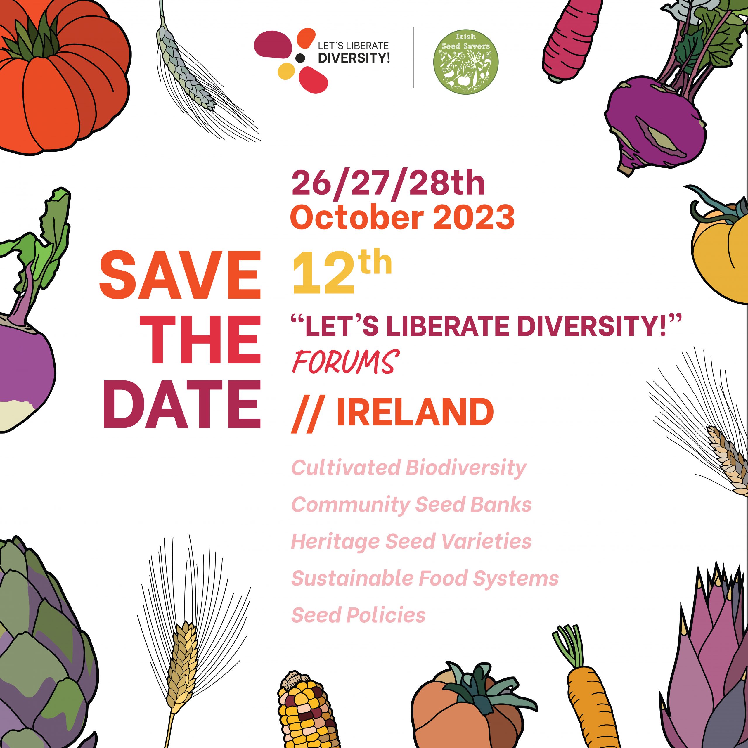 Irish Seed Savers Association is proud to announce that it will be hosting the 12th European Forum of the European Coordination of Let’s Liberate Diversity (EC-LLD) at Trinity College Dublin from October 26th to 28th, 2023. The conference will be inaugurated by Pippa Hackett, Minister for State, Department of Agriculture, Food and the Marine.