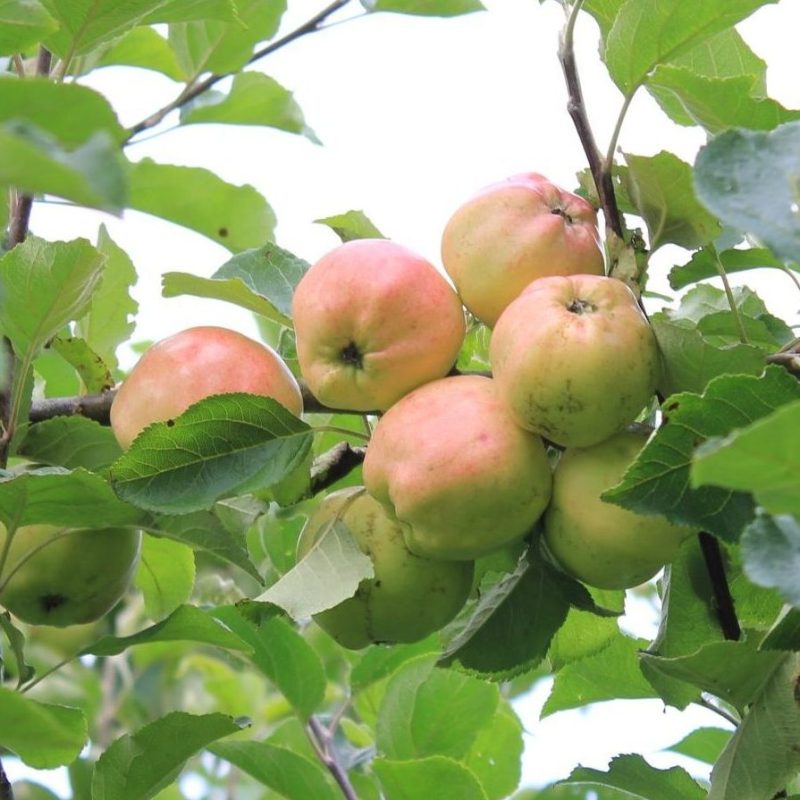 Medium sized, lovely sweet apple eaten off the trees in the first few weeks of September.