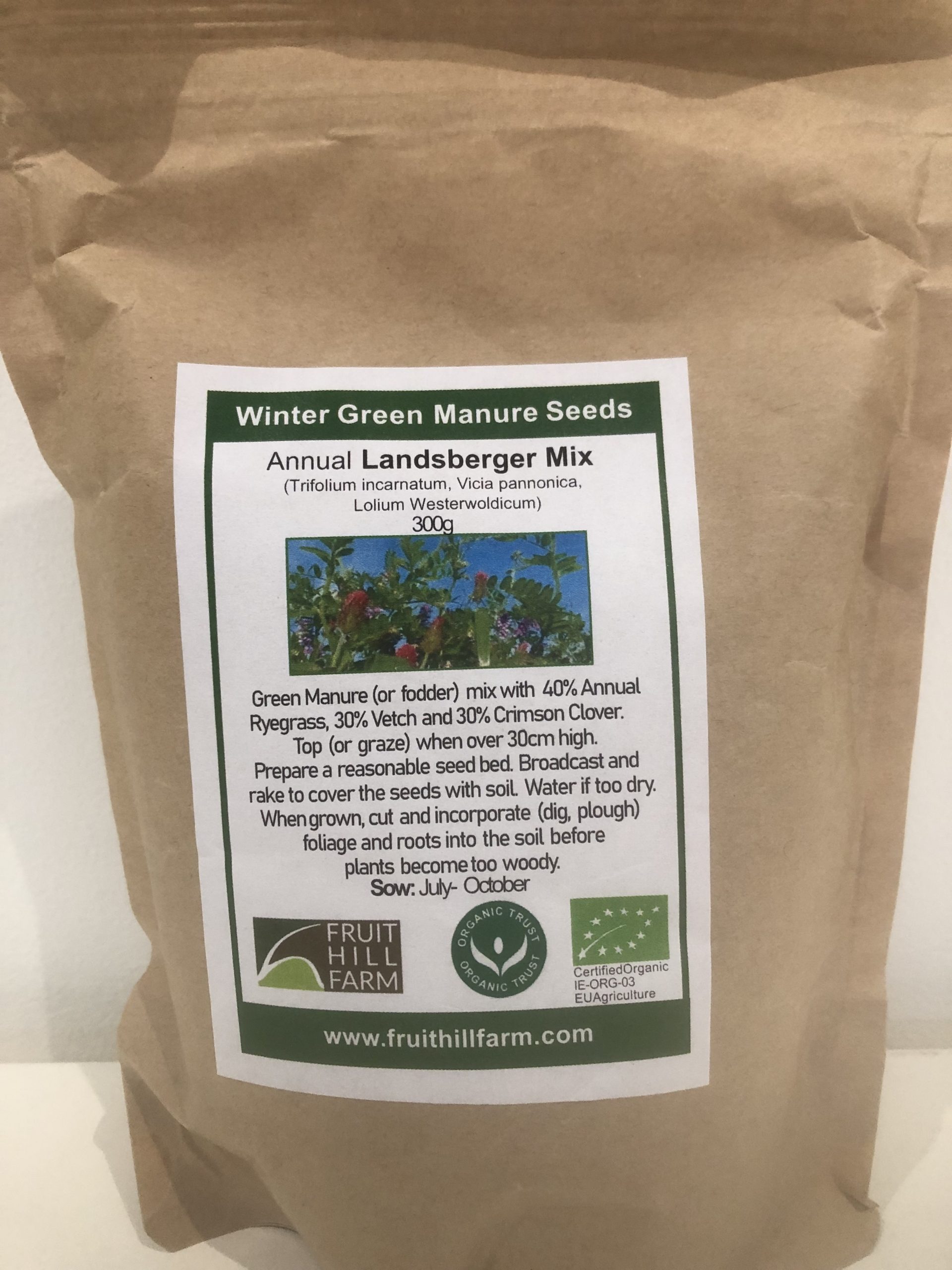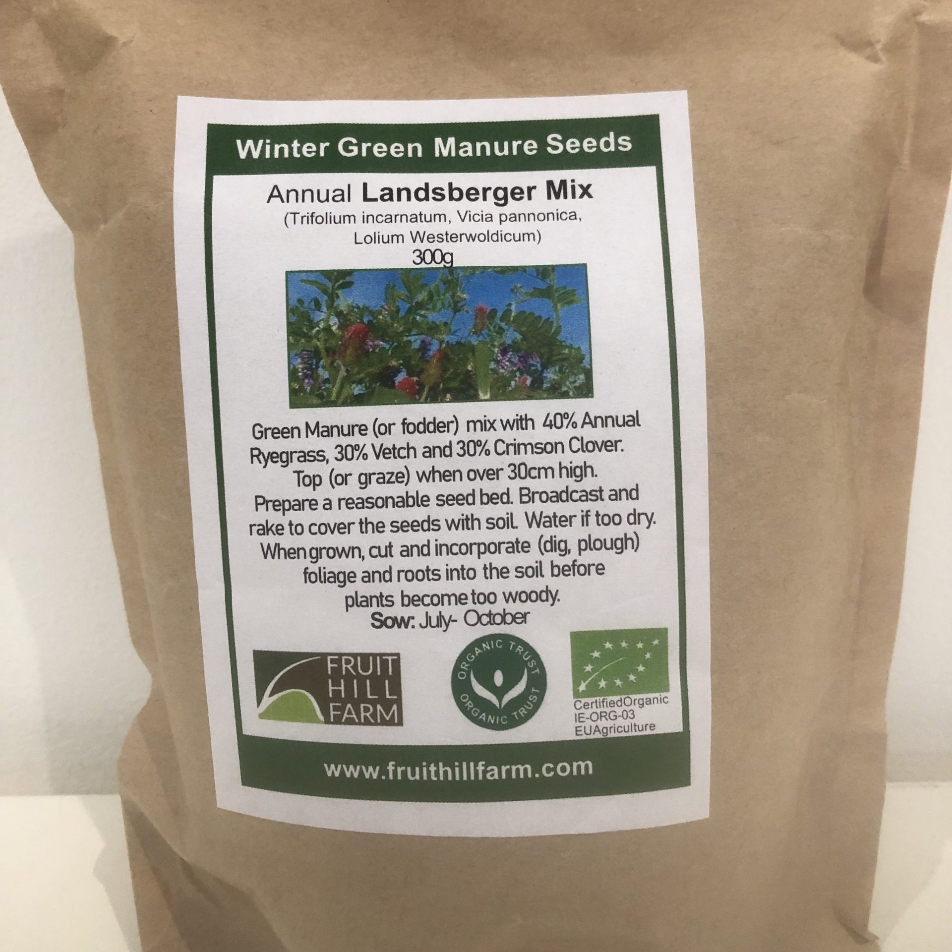 Green manure mix with 40% annual ryegrass, 30% pannonische vetch, 30% crimson clover.