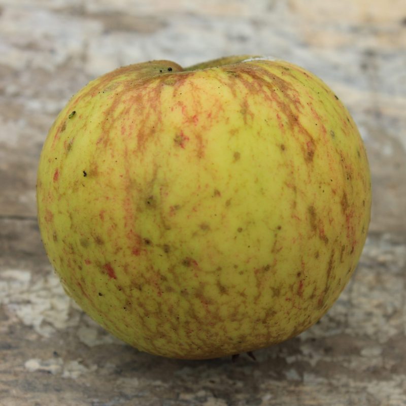 Juicy crisp bite of good flavour. Tip-bearing tree often chosen for its ornamental appeal when flowering. Brightly coloured fruit are nicely displayed in a weeping fashion. Initially shape the tree with structure starting higher than normal, to allow for the weeping effect later. Popular throughout Ireland since the 1830s. Part of the ‘Crofton’ collection associated with Co. Sligo.