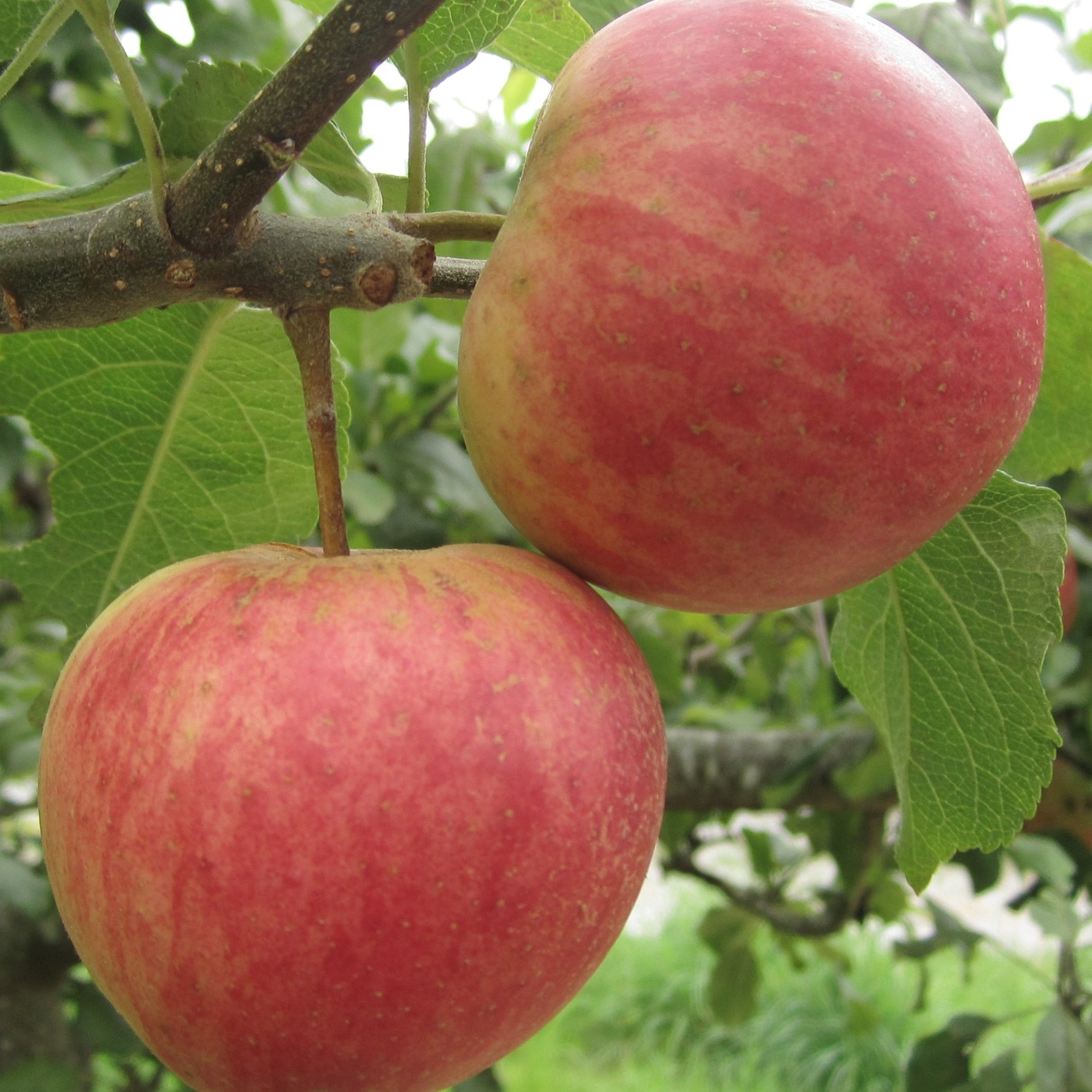 Crisp and juicy early apple. Very attractive fruit with deep red blush on a contrasting white background. Requires a good sunny site for best flavour and to reduce susceptibility to scab. Traditionally grown in Co. Armagh. Also grown in Idaho, USA.